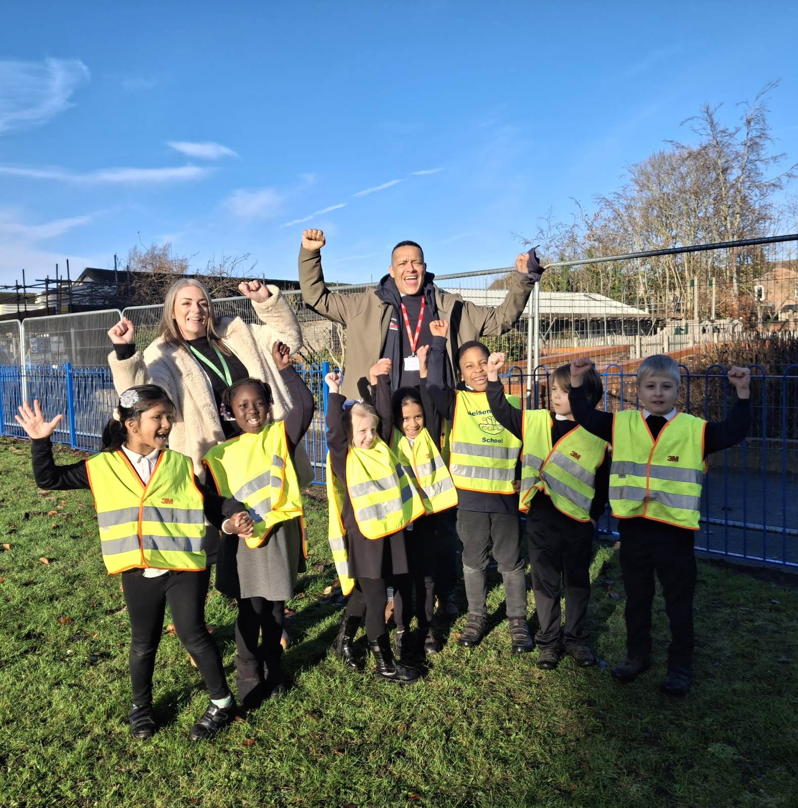 Pupils at Nelson Infant School have been showing their local MP Clive Lewis how work is progressing on the school's new nursery building this week.